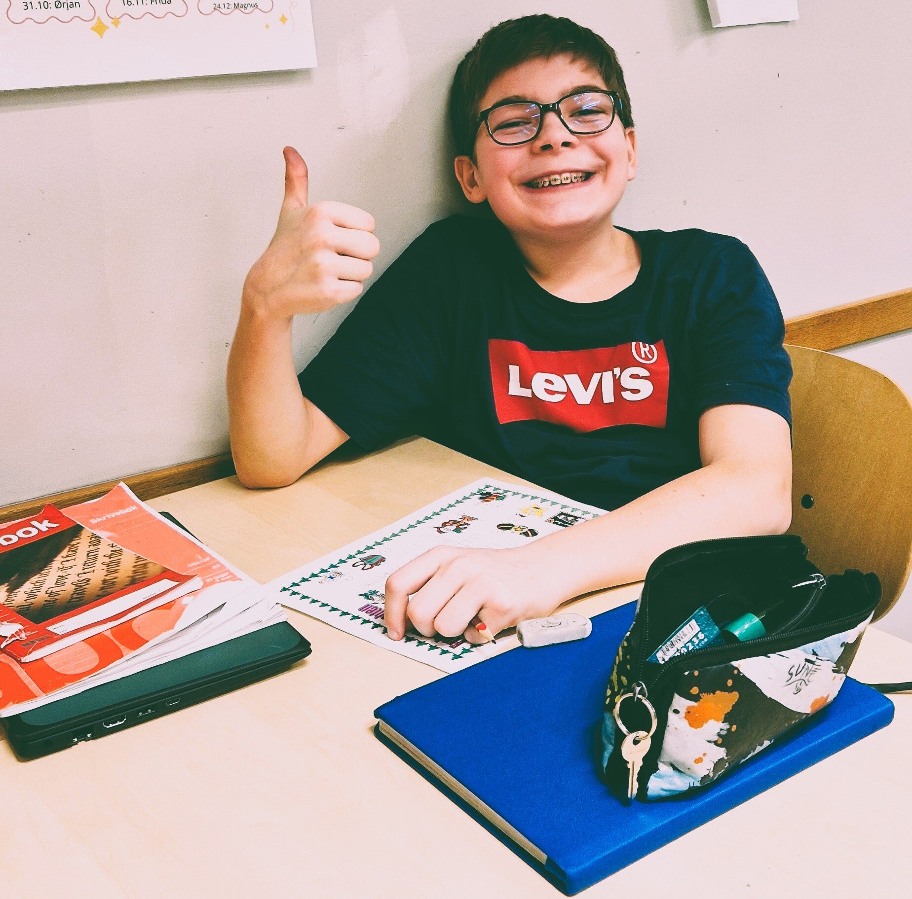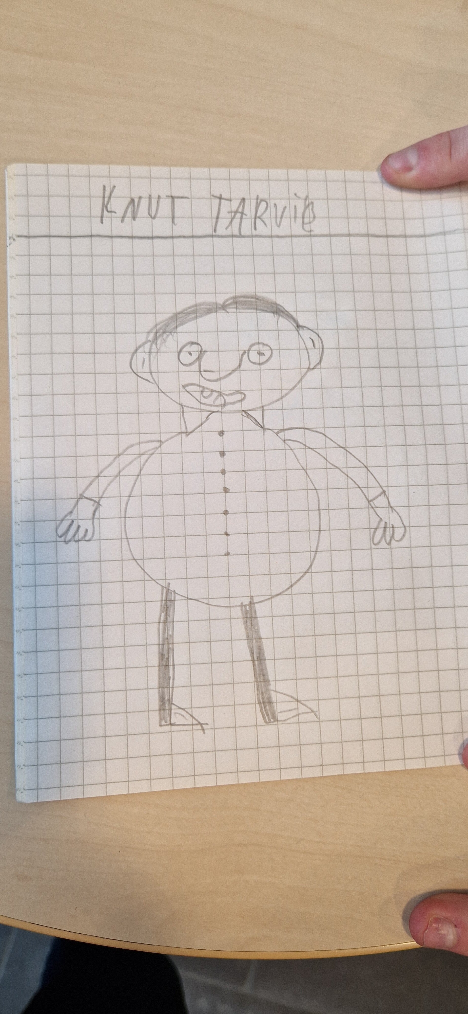 Her tegna Nils Emil mannen som heter Knut Trave.